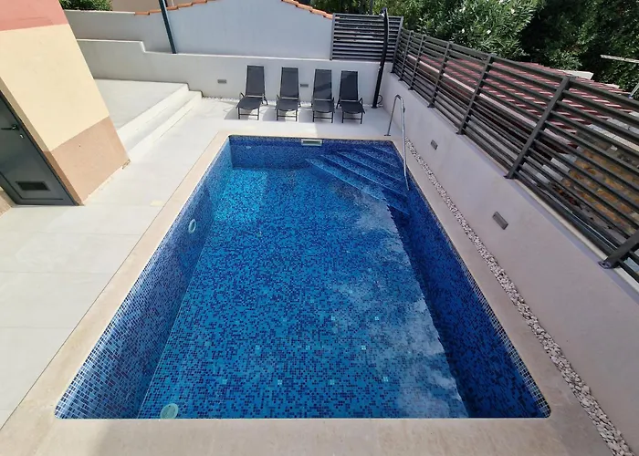مارينا تروجير تقع تقريباً على بعد 10 دقائق بالسيارة. هذه الفيلا على بعد 4 كم من مركز المدينة. من الامكان المحلية لتناول الطعام، Bistro Renata وAequum يمكن ايجادها على بعد 475 متر من الملكية. النقطة الإيجابية الاخرى هي Tango I بالقرب من Varnica ap Okrug Gornij.